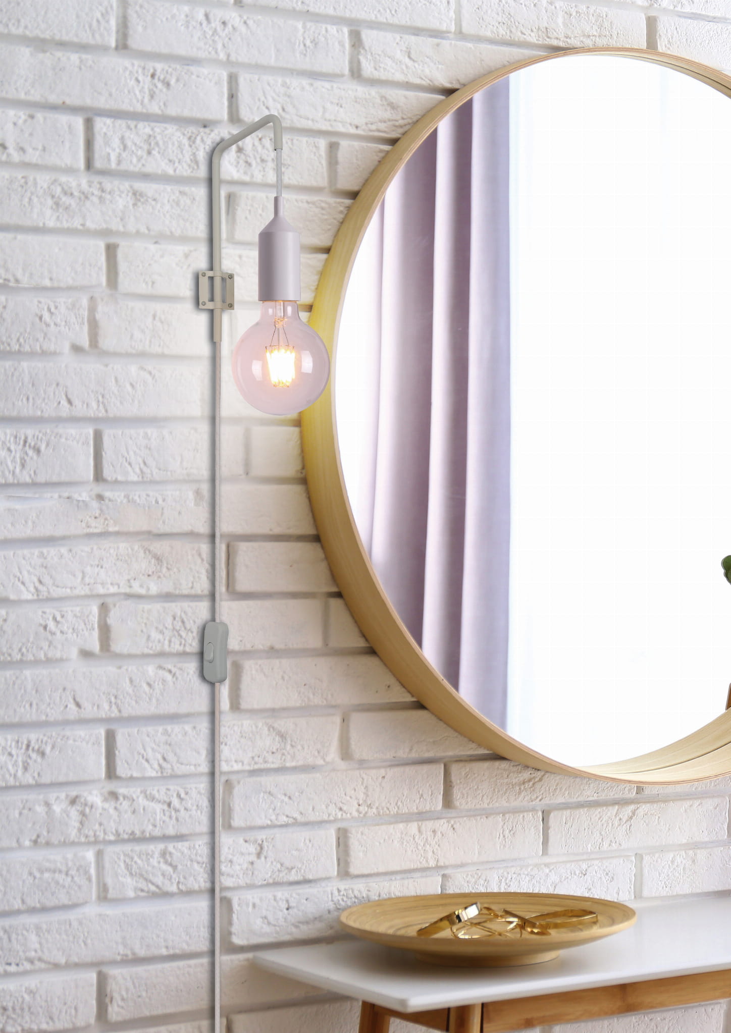 Nowoczesny kinkiet ścienny biały 1xE27 LAREN 1 z wyłącznikiem i wtyczką