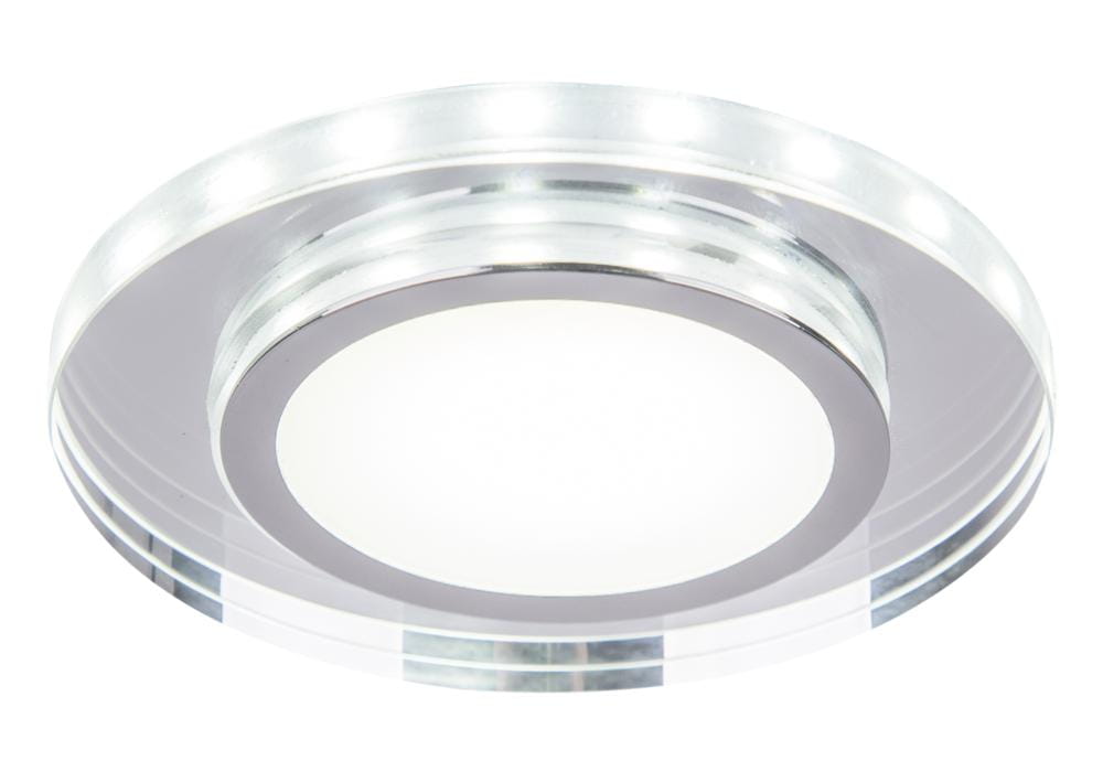 Oczko sufitowe oprawa stropowa okrągła szlif szkło transparentne RING LED BIAŁY SSP-26 CH/TR+WH 10W - podtynkowy panel LED, przeznaczony do wbudowywania we wszystkie rodzaje sufitów podwieszanych oraz inne zabudowy. Oprawa sufitowa ze zintegrowanym LEDem oraz dekoracyjnym i funkcjonalnym ringiem LED, w komplecie dedykowany zasilacz oraz sprężyny montażowe. Posiada możliwość niezależnego zaświecania panela centralnego oraz ringu LED lub obu jednocześnie, sterowany włącznikiem jednoobwodowym poprzez kolejne takty OFF/ON. Oprawy stropowe doskonale prezentują się pojedynczo oraz jako oświetlenie grupowe, tworząc jedyne w swoim rodzaju efekty podkreślające indywidualny charakter oświetlanych pomieszczeń.