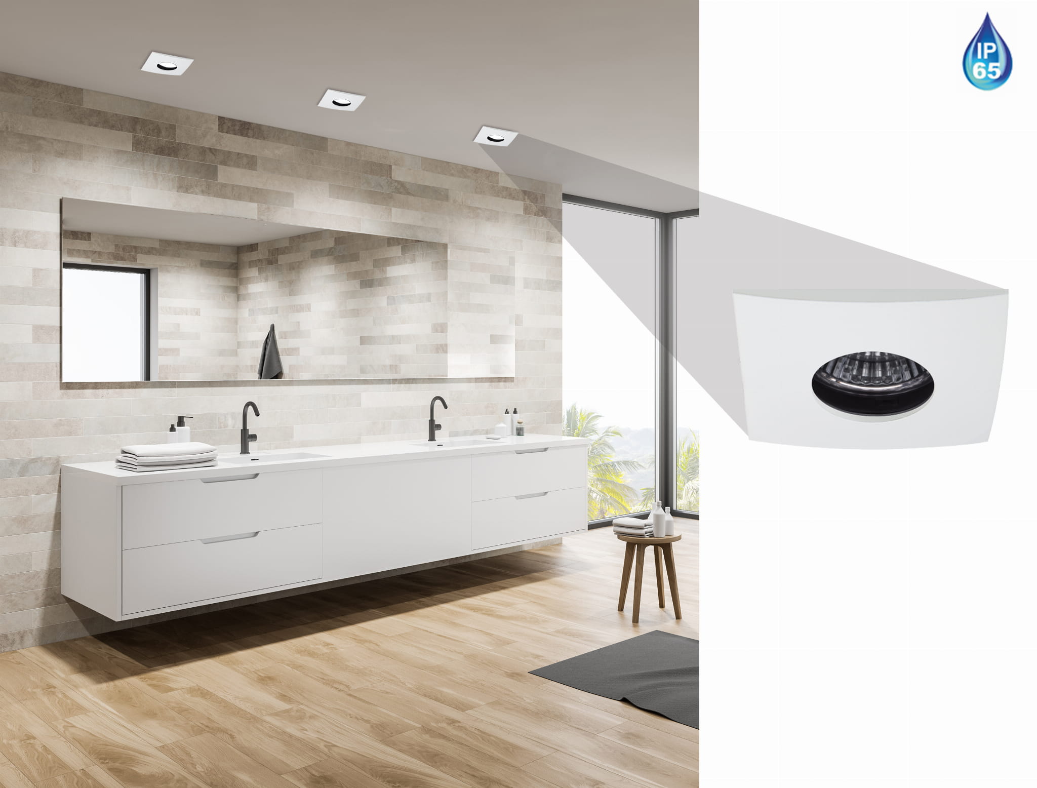 Oprawa stropowa kwadratowa IP65 HERMETYCZNA biała SH-13 WH MR16 - nowoczesna oprawa punktowa stropowa, idealna do sufitów podwieszanych. Oprawa sufitowa o wysokiej szczelności IP65 zasilana napięciem 12V, pozwala na montaż w łazienkach w obszarach I strefy użytkowania (obszar nad wanną, brodzikiem lub wewnątrz pryszniców).