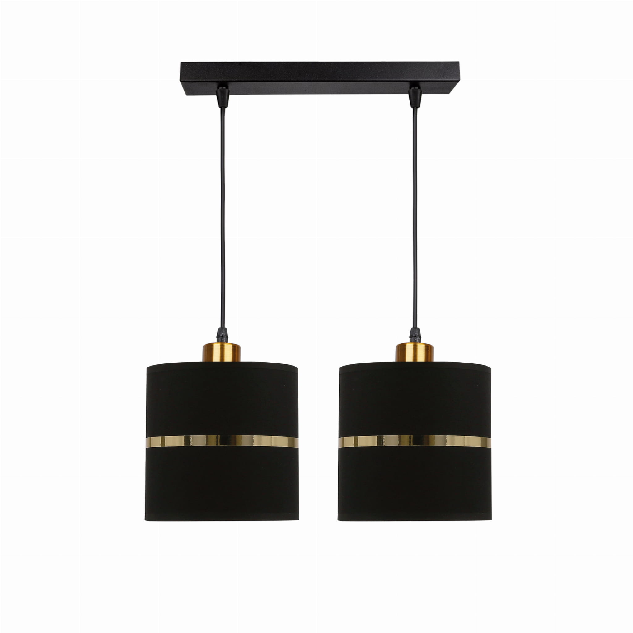 Podwójna lampa sufitowa wisząca czarna ze złotym 2xE27 40W ASSAM - lampa wisząca nowoczesna czarna z kremowym - lampa wisząca atrakcyjna wizualnie - oświetla i zdobi! Lampa do sypialni, lampa do kuchni, lampa nad stół do jadalni - pasuje do większości eleganckich aranżacji nowoczesnych.