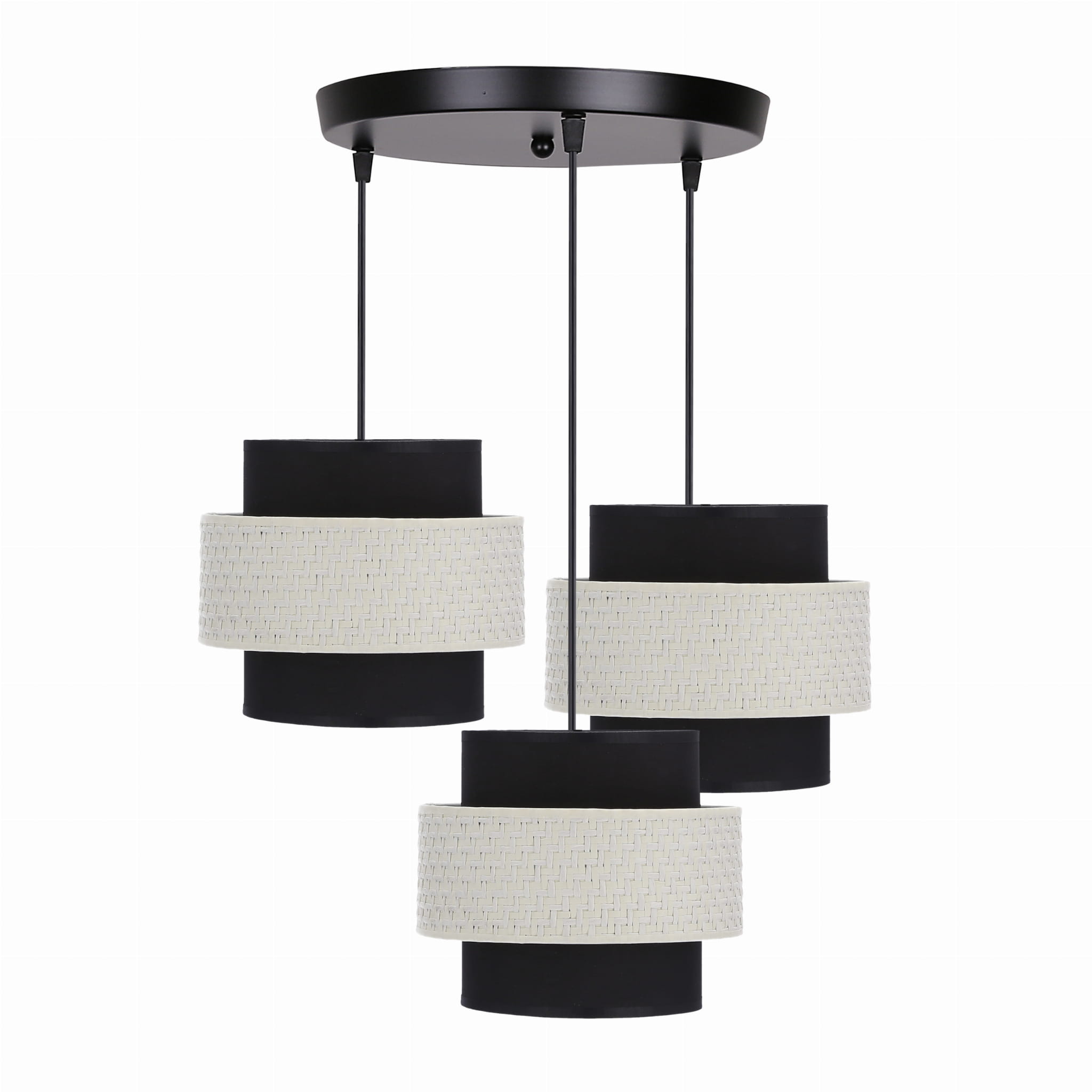 Potrójna lampa sufitowa wisząca czarna z rattanem talerz 3xE27 40W BENTA - lampa wisząca nowoczesna czarna z kremowym - lampa wisząca atrakcyjna wizualnie - oświetla i zdobi! Lampa do sypialni, lampa do kuchni, lampa nad stół do jadalni - pasuje do większości eleganckich aranżacji nowoczesnych.
