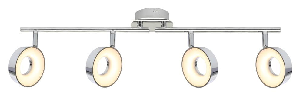 Srebrna lampa sufitowa ledowa listwa 3000K ISLA 4X6W LED CHROM - mistrzowskie połączenie metalowej podstawy z kloszem z tworzywa, możliwość regulacji kąta nachylenia klosza w pionie i poziomie.