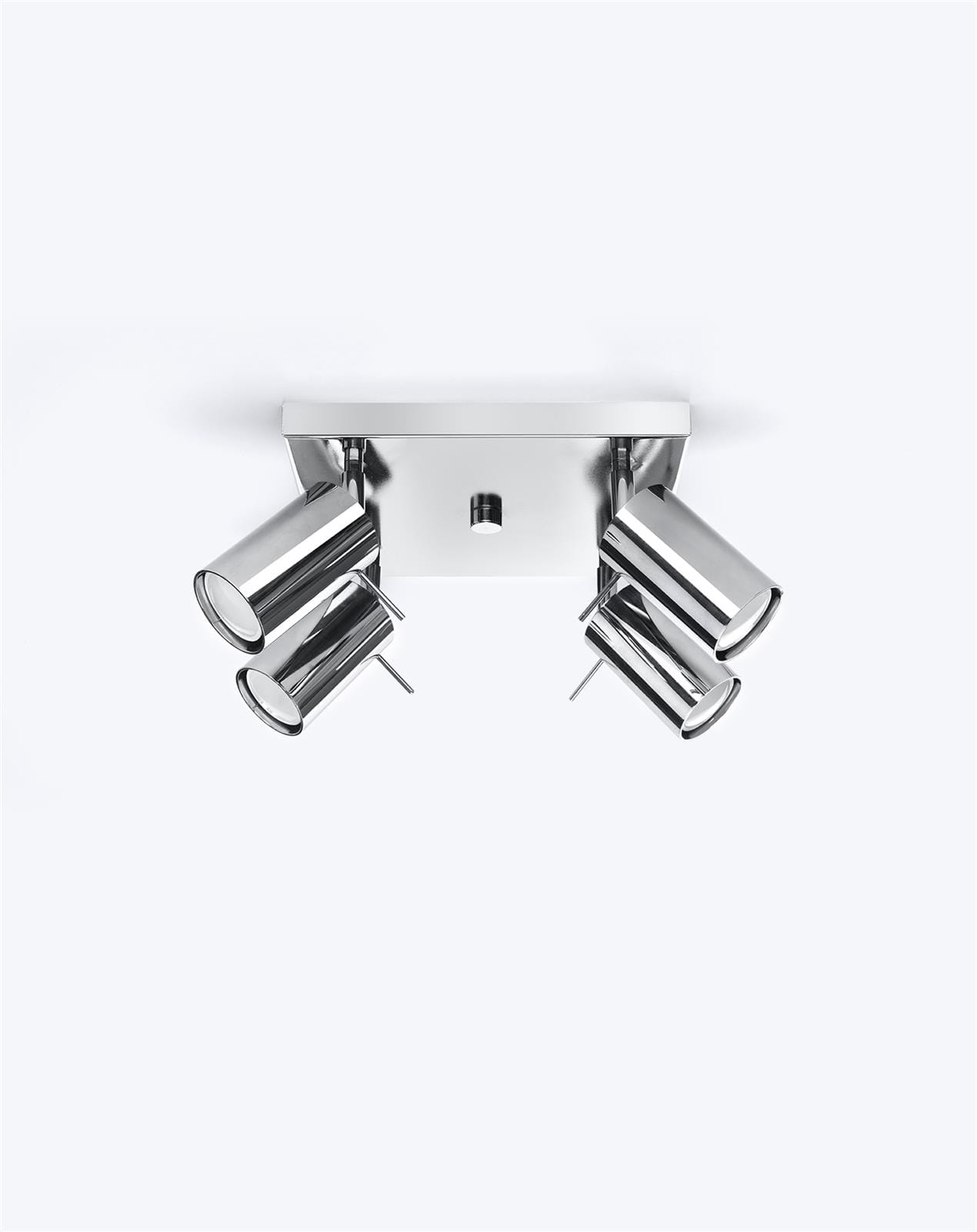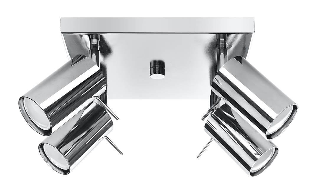 Srebrna lampa sufitowa regulowana 4xGU10 chrom plafon RING 4 spot - połączenie minimalistycznego designu z najwyższą funkcjonalnością. Srebrna lampa sufitowa nowoczesna posiada chromowane przeguby, pozwalające na regulację promieni świetlnych. Lampa przysufitowa szara RING doskonale odnajdzie się w loftach oraz przestrzeniach urządzonych w stylach minimalistycznym oraz industrialnym. Precyzja, z jaką została wykonana, stanowi o nienagannej prezencji i długowieczności.