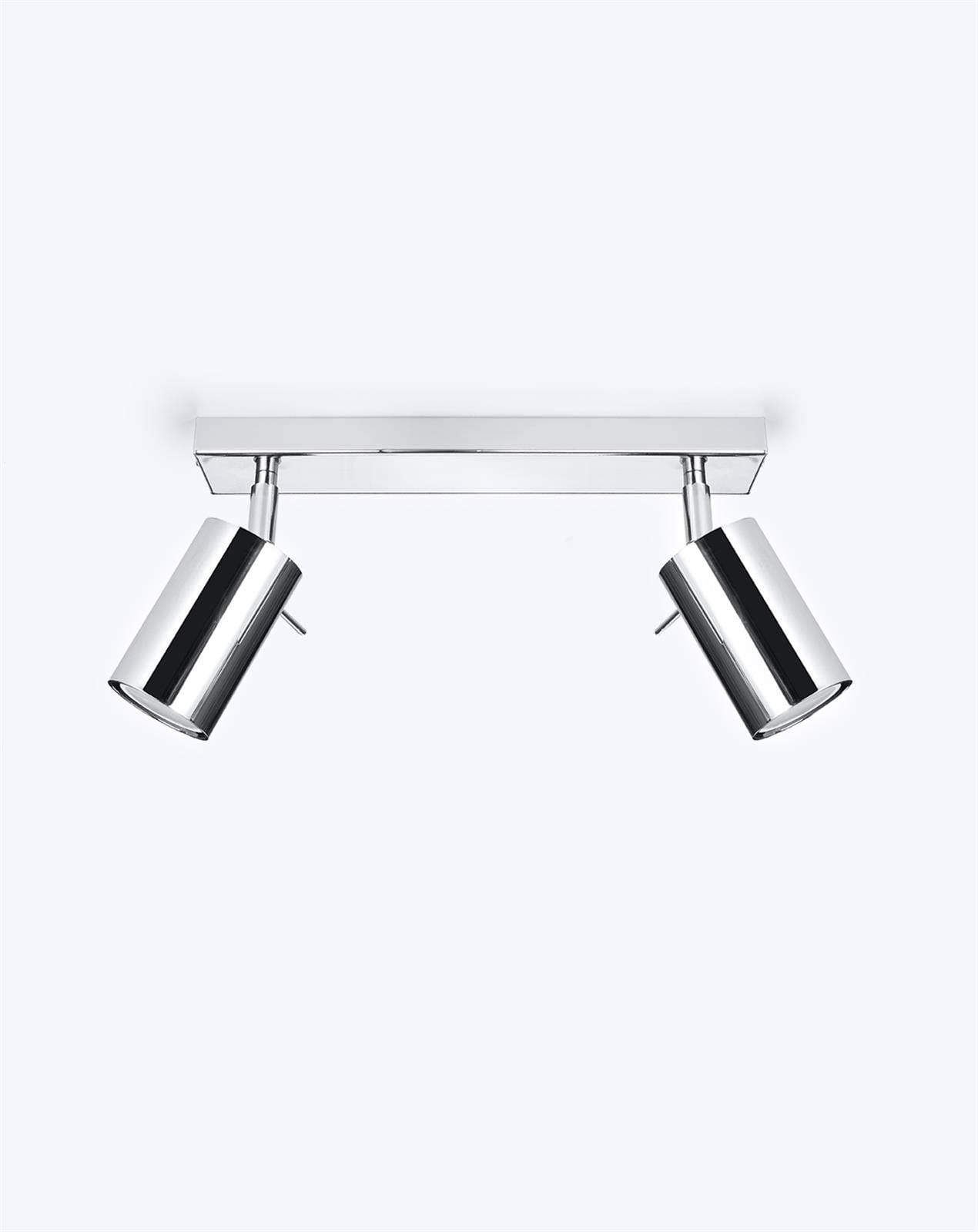 Srebrna lampa sufitowa regulowana listwa 2xGU10 chrom plafon RING 2 spot - połączenie minimalistycznego designu z najwyższą funkcjonalnością. Srebrna lampa sufitowa nowoczesna posiada chromowane przeguby, pozwalające na regulację promieni świetlnych. Podwójna lampa przysufitowa RING doskonale odnajdzie się w loftach oraz przestrzeniach urządzonych w stylach minimalistycznym oraz industrialnym. Precyzja, z jaką została wykonany, stanowi o nienagannej prezencji i długowieczności.