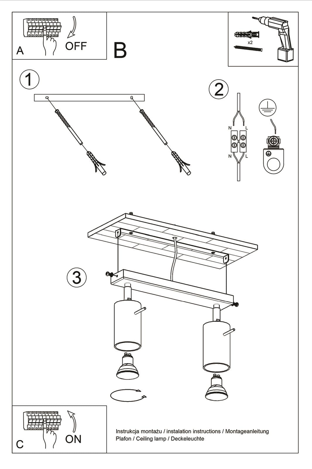 Ilość źródeł światła: 2xGU10 wymienne
