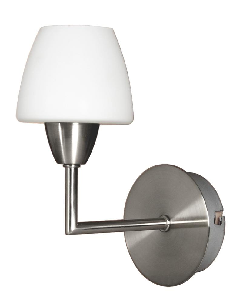 Srebrny kinkiet do salonu TOGO 1XG9 TOGO 40W NIKIEL MAT - delikatna satyna w połączeniu z białym kloszem podkreśli sterylność wnętrza, elegancka podstawa o wyrazistej formie gięcia.