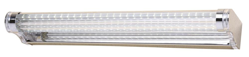 Srebrny kinkiet nad lustro 40 cm 7W LED MODERNO STAL NIERDZEWNA POLEROWANA/AKRYL stylowa kombinacja stali nierdzewnej z transparentnym akrylem, klosz dodatkowo zdobiony poziomymi żłobieniami, imponująco rozpraszającymi strumień światła odbijający się w lustrzanej powierzchni stalowej podstawy. Kinkiet nad lustro posiada ruchome połączenie podstawy z kloszem umożliwiając regulację kąta padania światła.