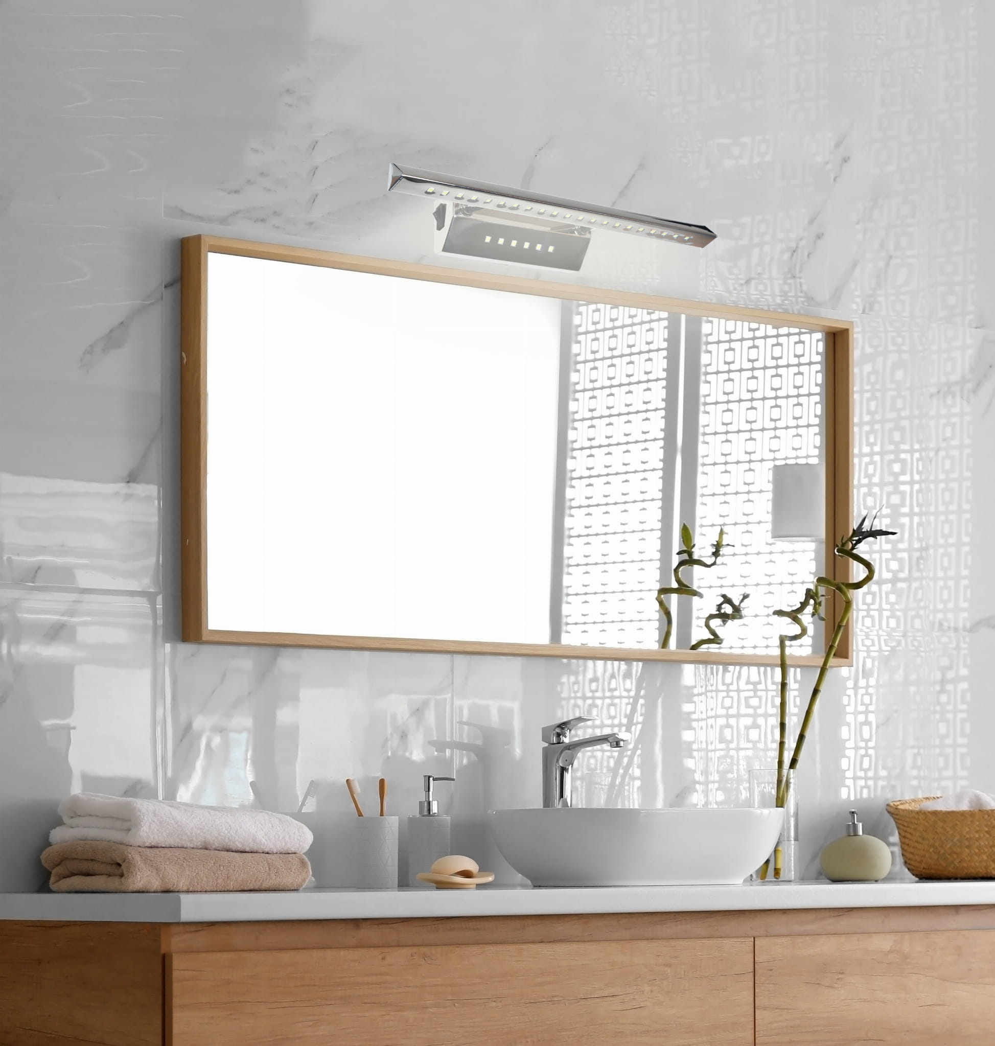 Srebrny kinkiet nad lustro ledowy FORTE LED 3 7W RURKA trójkątna z wyłącznikiem chrom nowoczesny kinkiet z ledowym źródłem światła do podświetlania elementów dekoracyjnych np. obrazów, zdjęć lub luster. Regulowana główka zapewni optymalne doświetlenie - kinkiet nowoczesny to prosta konstrukcja bez zbędnych dekoracji zapewniający uniwersalność w zastosowaniu.