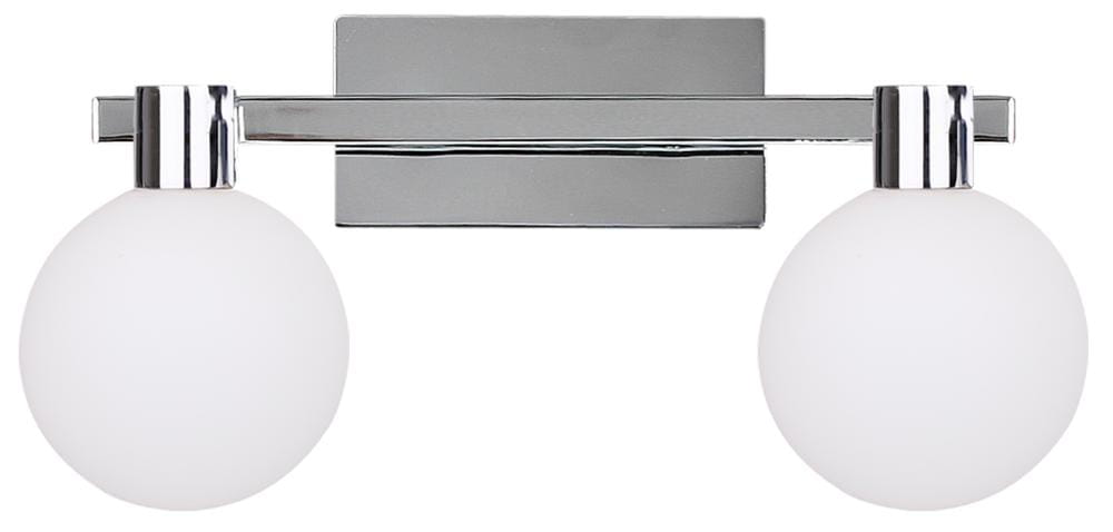 Srebrny kinkiet podwójny klosze białe kule 2xG9 40W MALDUS CHROM - kinkiet do salonu, kinkiet do sypialni, kinkiet do przedpokoju w klasycznym wydaniu. Klosze białe kule zamocowane do chromowej podstawy.