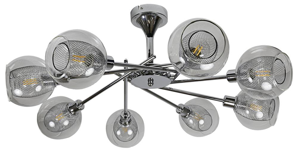 Srebrny żyrandol nowoczesny, lampa przysufitowa chromowana 8xE14 40W OZZO - ekskluzywny żyrandol nowoczesny srebrny, żyrandol do salonu, żyrandol do jadalni - luksusowe i precyzyjne połączenie szkła i metalu.