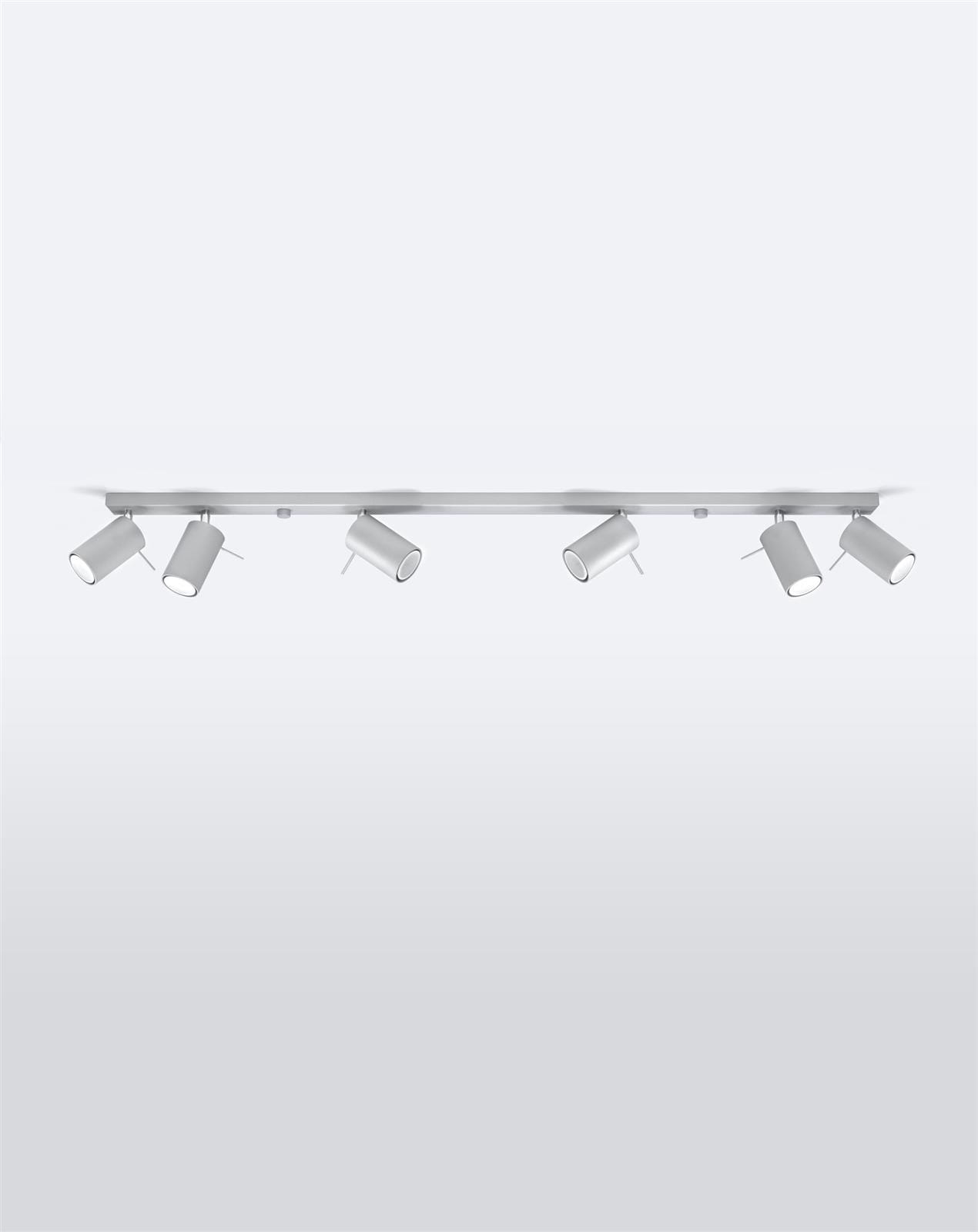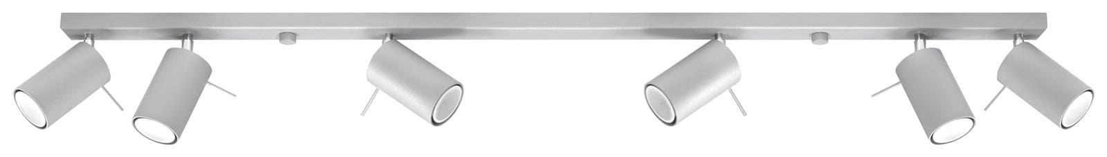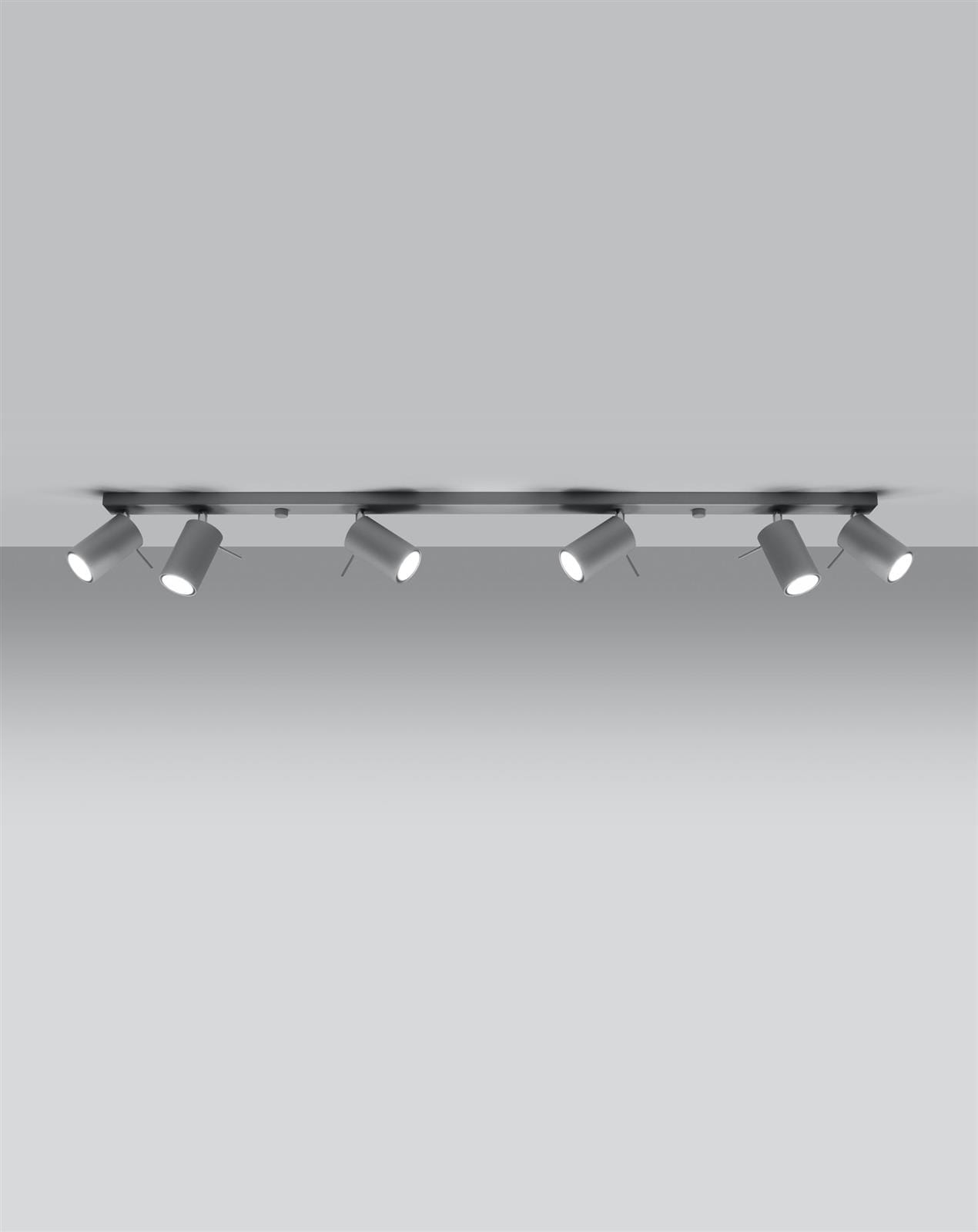 Szara lampa sufitowa regulowana listwa 6xGU10 plafon RING 6L spot - połączenie minimalistycznego designu z najwyższą funkcjonalnością. Szara lampa sufitowa nowoczesna posiada chromowane przeguby, pozwalające na regulację promieni świetlnych. Lampa przysufitowa listwa szara RING doskonale odnajdzie się w loftach oraz przestrzeniach urządzonych w stylach minimalistycznym oraz industrialnym. Precyzja, z jaką została wykonana, stanowi o nienagannej prezencji i długowieczności.