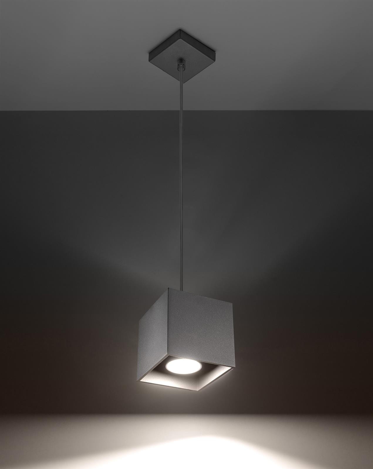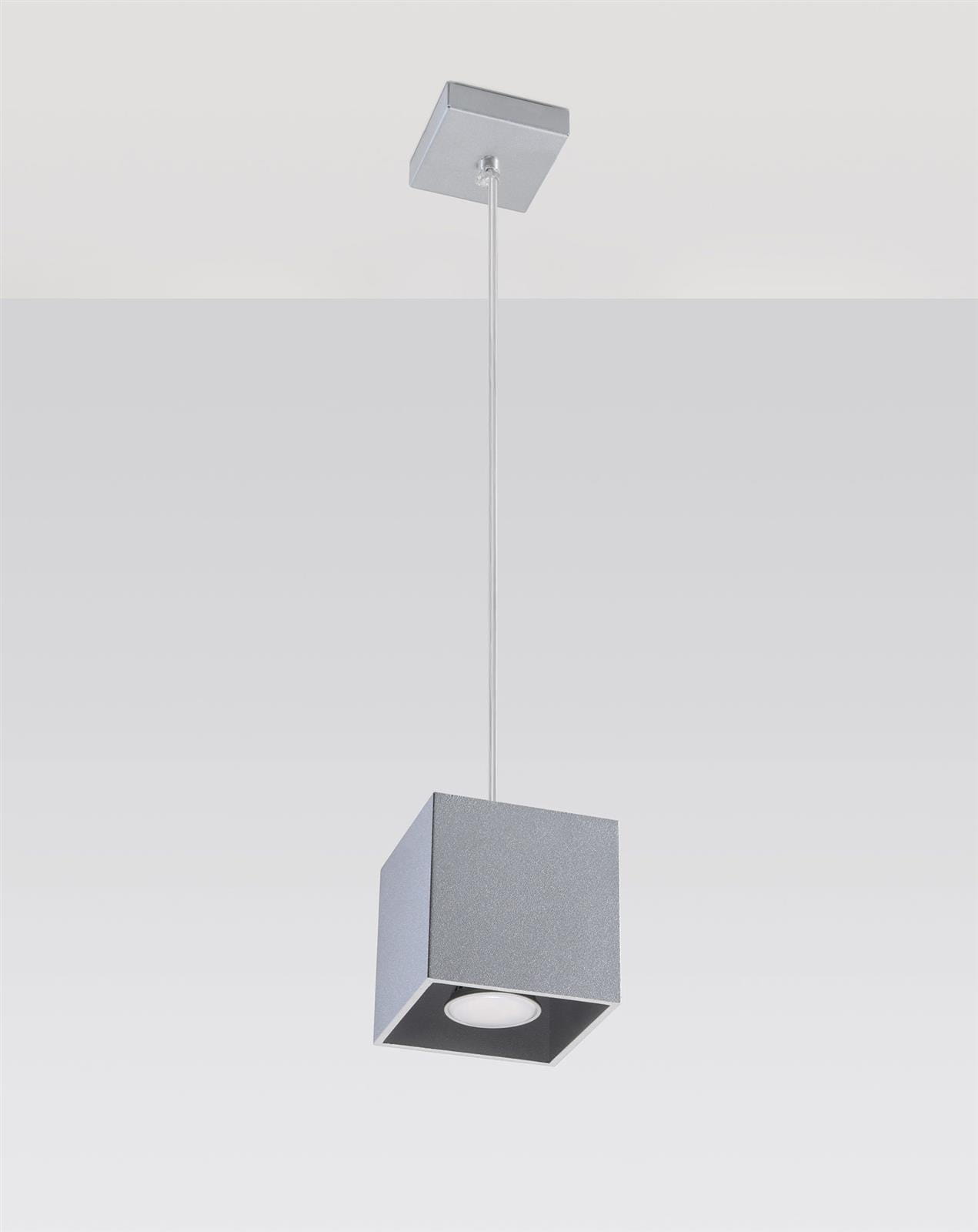 Szara lampa wisząca pojedyncza 1xGU10 QUAD 1 - Minimalistyczna lampa wisząca szara będzie genialnym uzupełnieniem nowoczesnych wnętrz pełnych prostych, a jednocześnie efektownych elementów. Sprawdzi się jako lampa w salonie, lampa w sypialni, lampa nad stół w jadalni. Minimalistyczna lampa wisząca - kwintesencja dobrego stylu!