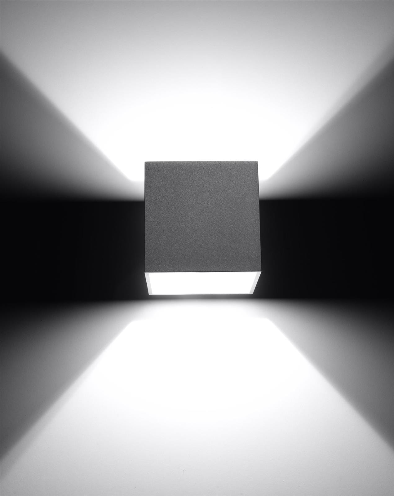 Szary kinkiet nowoczesny QUAD 1 - prosty, klasyczny kinkiet szary nowoczesny w kształcie sześcianu. Szary kinkiet ścienny niewielkich rozmiarów, a jednak dodaje wyjątkowego charakteru wnętrzom.