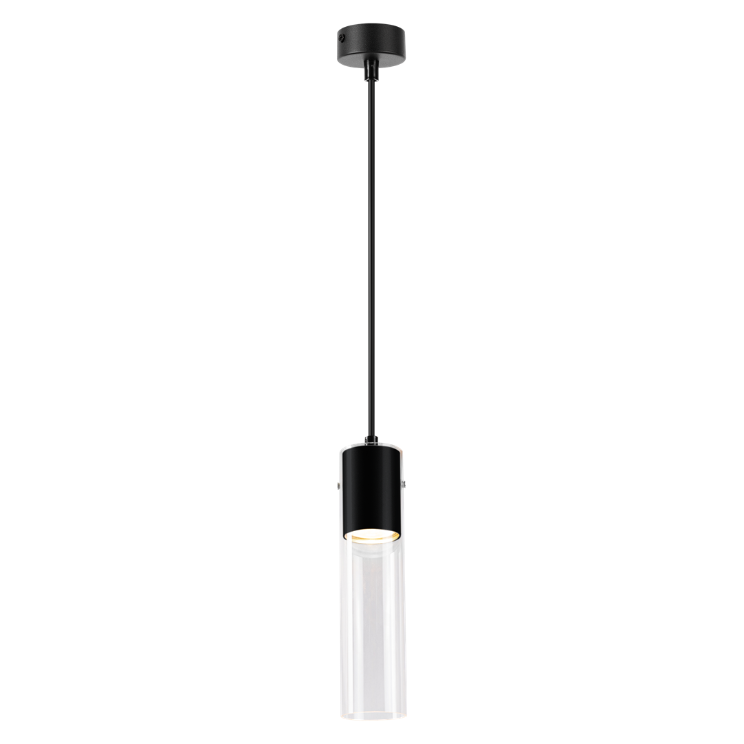 Pojedyncza lampa wisząca czarna tuba dekoracyjna 127 cm 1xGU10 Ricky - modna lampa do salonu, lampa do kuchni nad wyspę, lampa wisząca do sypialni przy łóżku - długa tuba sufitowa wisząca z połączenia metalu i akrylu. Czarna lampa dekoracyjna wisząca o subtelnej i finezyjnej formie - oświetlenie i ozdoba wnętrza.