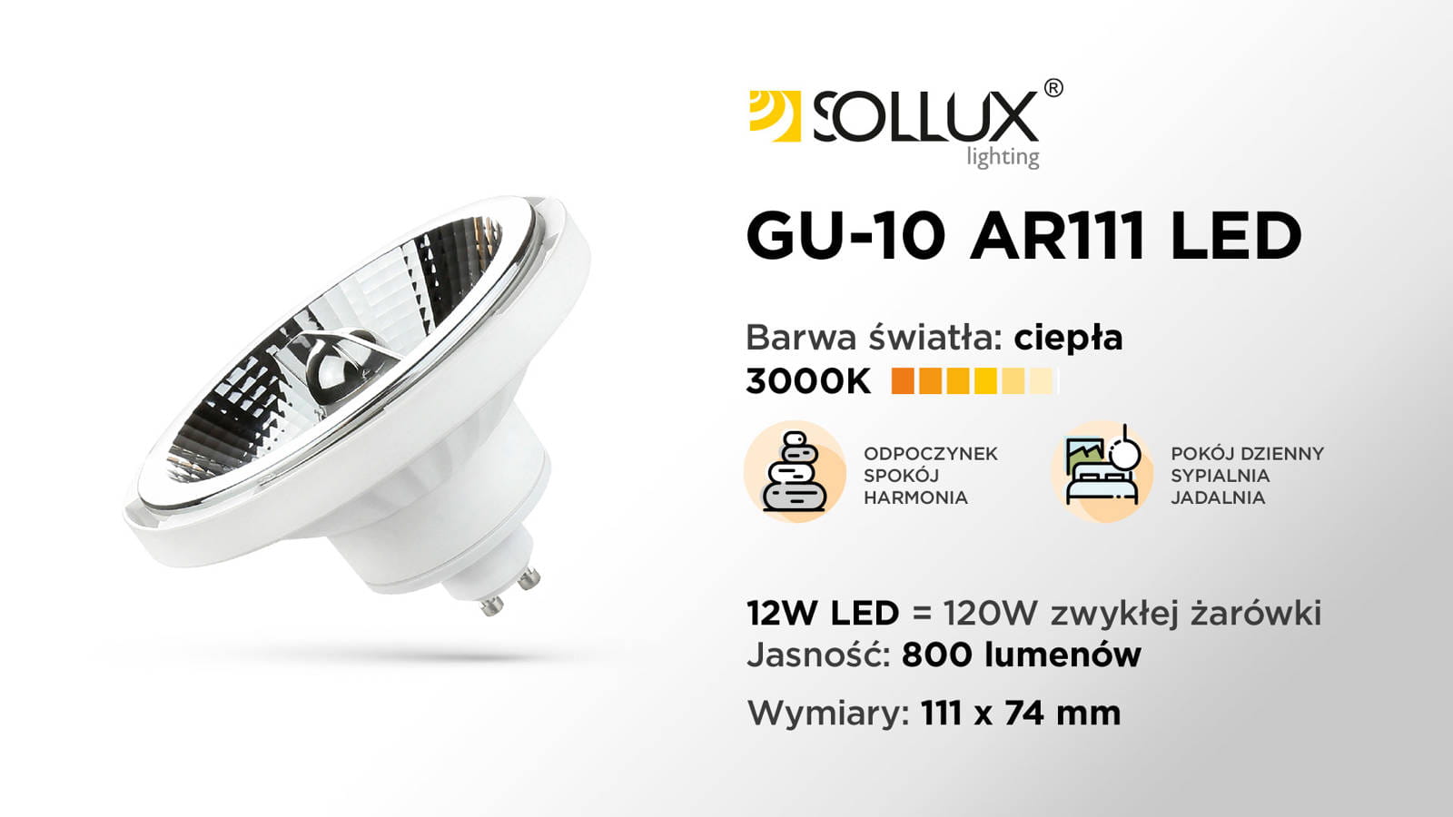 Żarówka LED GU10 3000K 12W 800lm - nowoczesna żarówka ledowa o ciepłej barwie światła LED