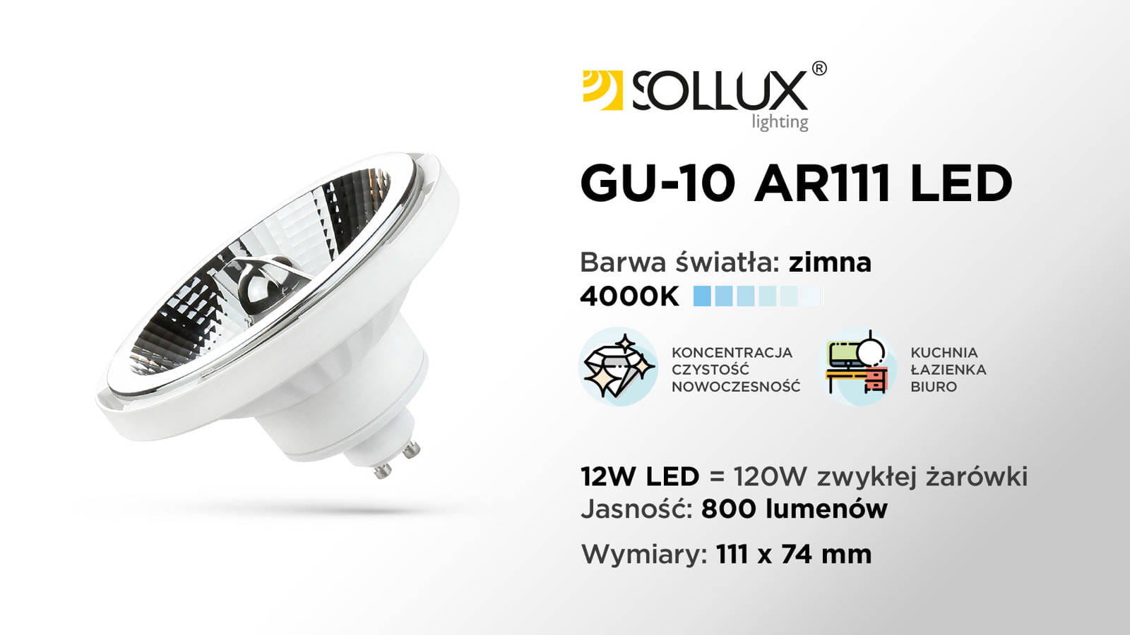Rodzaj żarówki: Gu10/ AR111