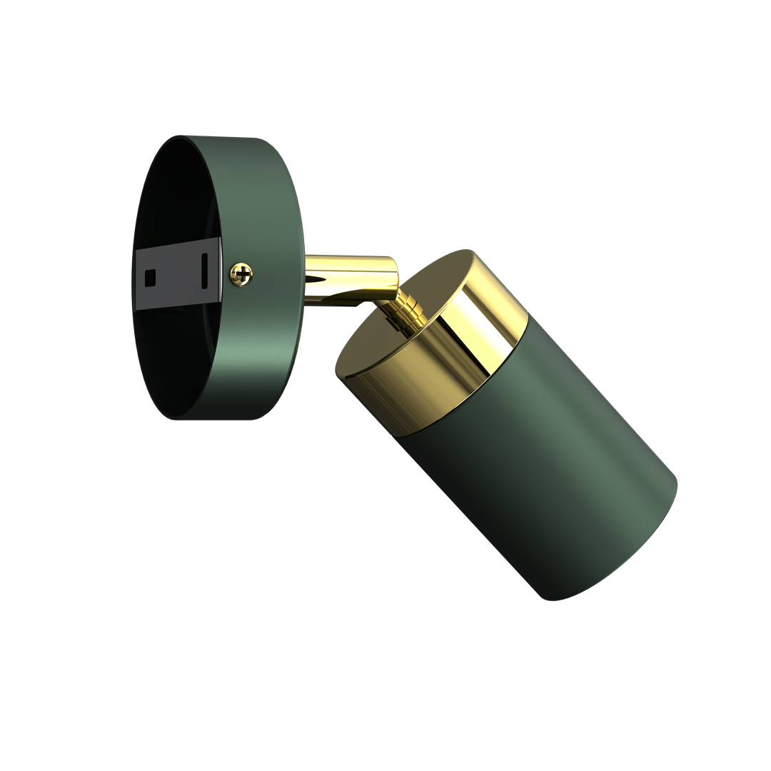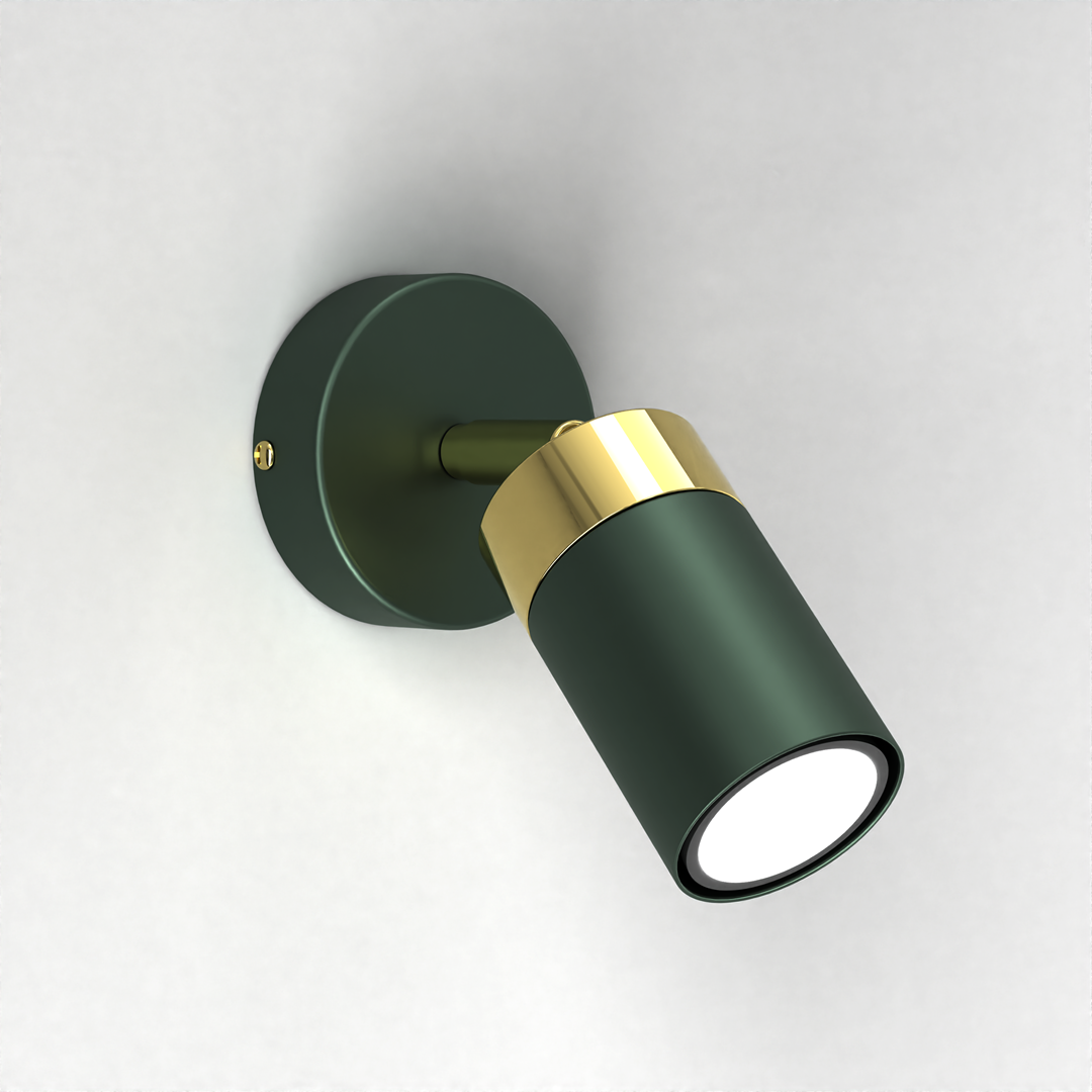 Kinkiet ścienny regulowany zielony ze złotym wykończeniem idealny dla miłośników minimalistycznych rozwiązań w modnych tonacjach kolorystycznych.