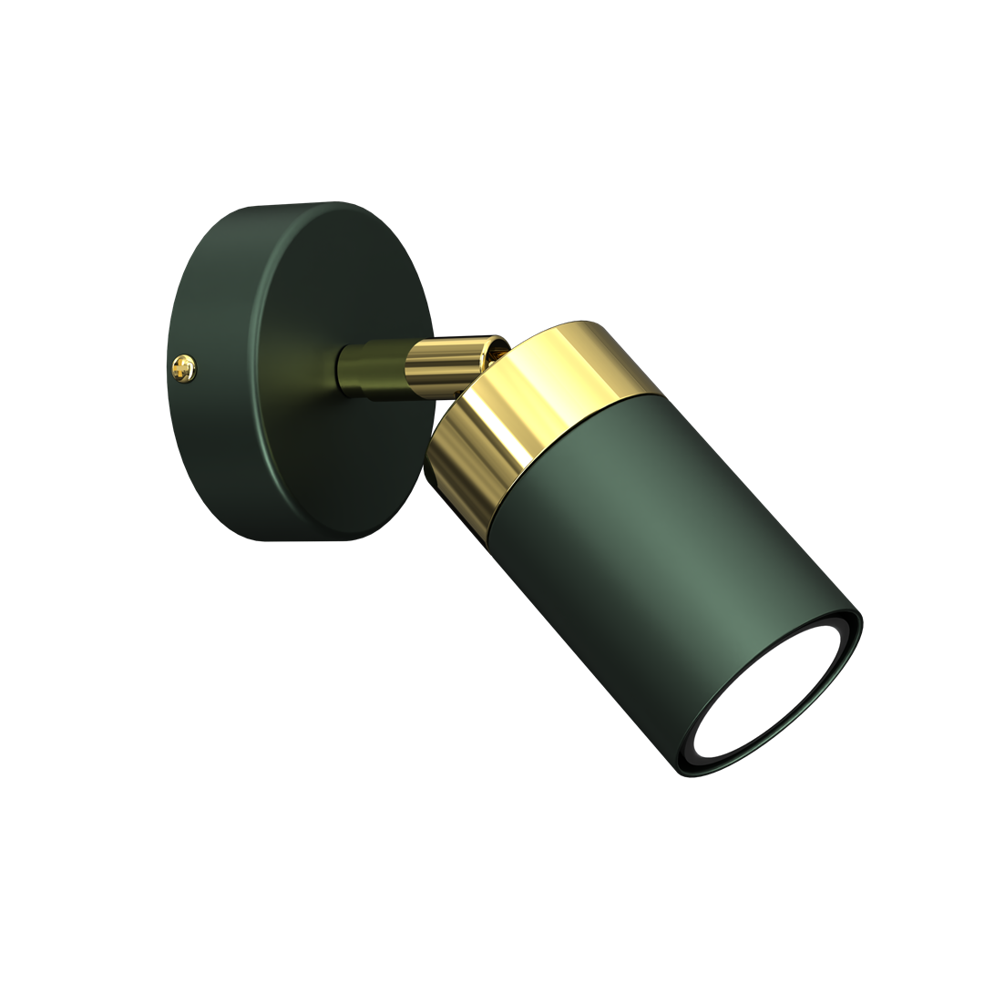 Zielony kinkiet ścienny 1xGU10 JOKER GREEN/GOLD - kinkiet ścienny regulowany typu spot ze złotym dekorem. Możliwość regulacji kierunku strumienia światła to gwarancja, iż sprawdzi się jako lampka do czytania w łóżku, kinkiet nad kanapą, elegancki kinkiet na korytarz.